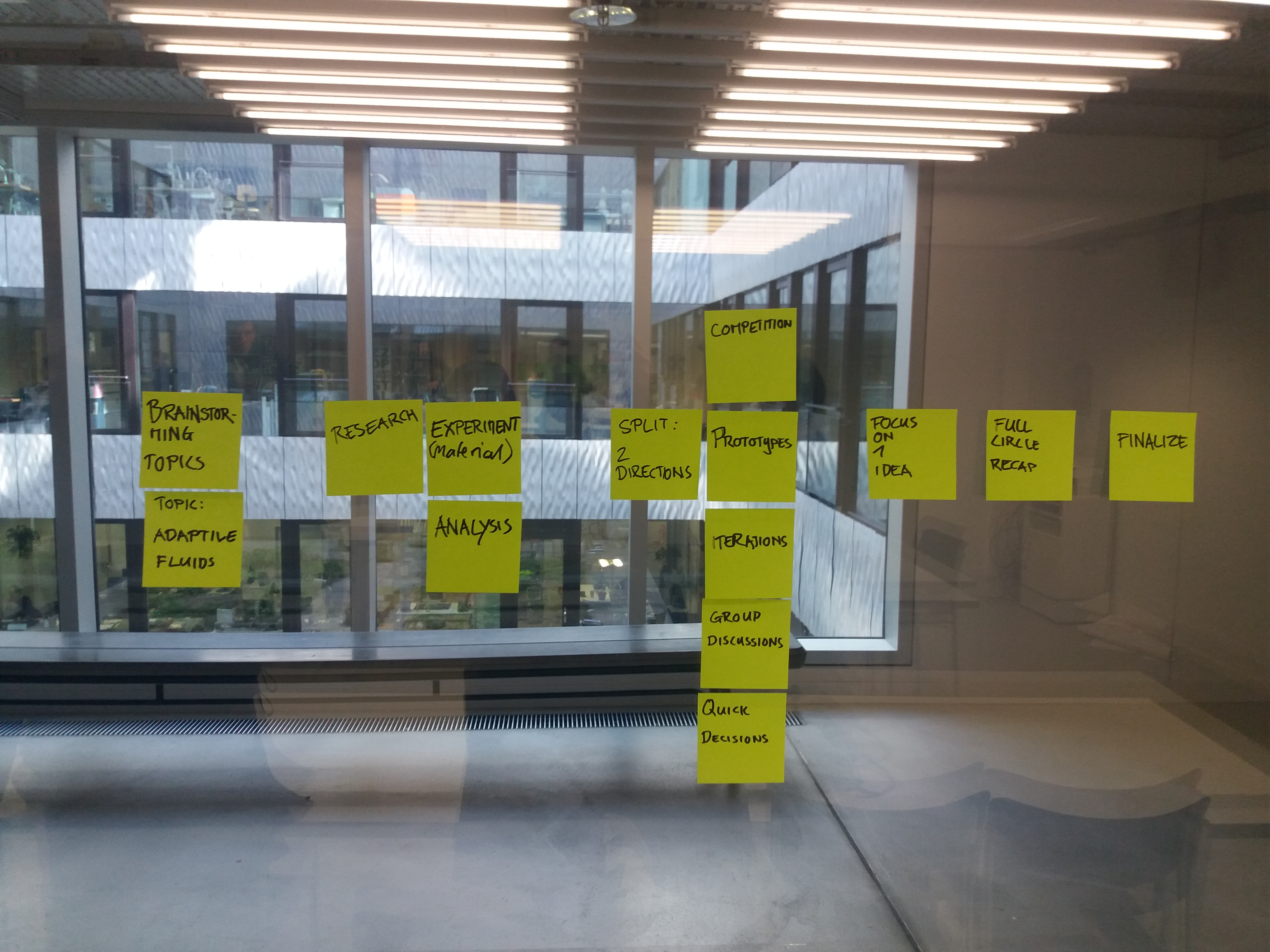 Looking at the process of a specific project, our contribution to the course “Digital Fabrication” earlier this year we see an interplay of defining the topic and potential solutions.